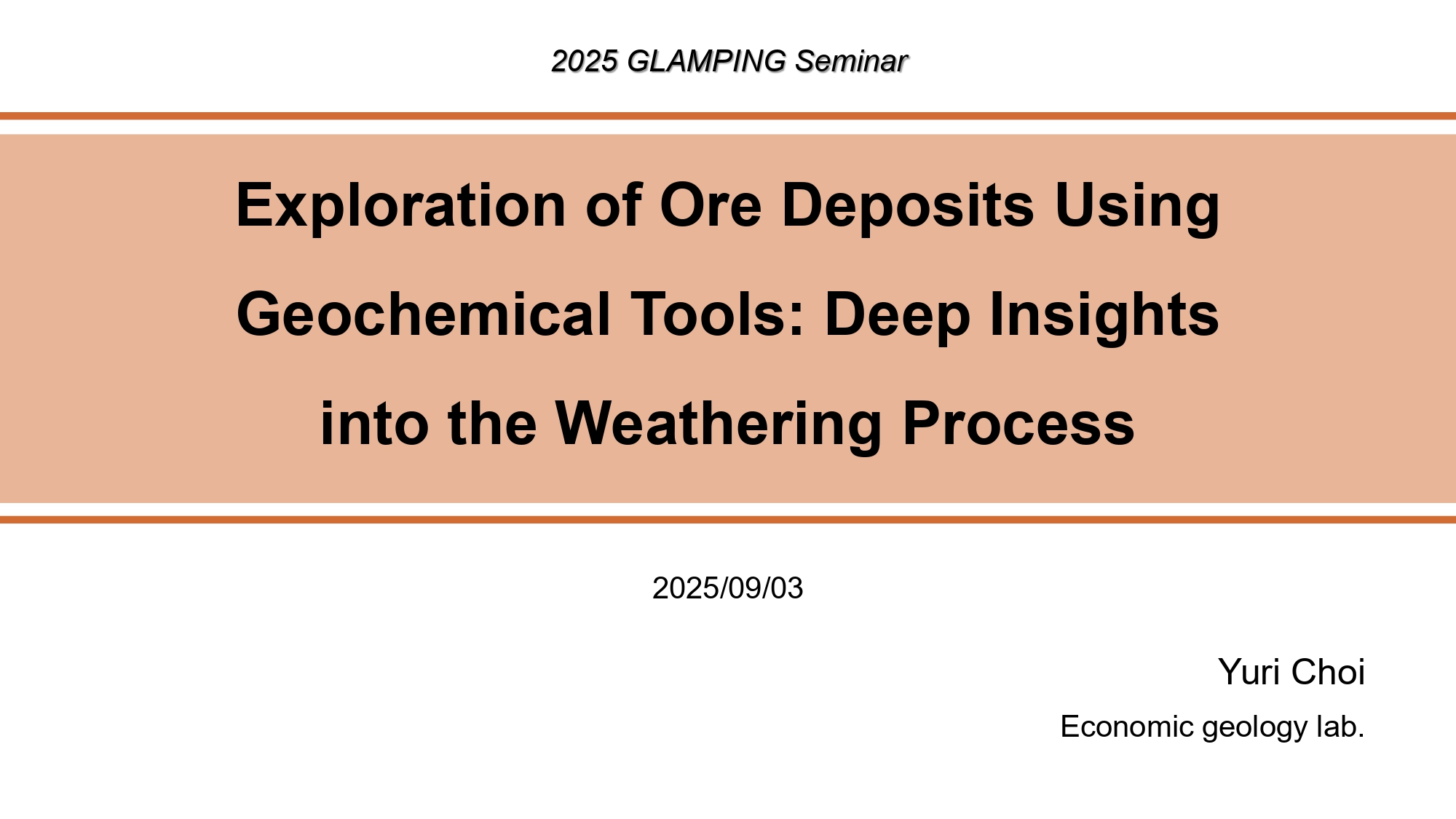 학술행사 GLAMPING Seminar: Exploration of Ore Deposits Using Geochemical Tools: Deep Insights into the Weathering Process일시: 2025-09-03 장소: 129동 102호 발표자: 최유리 LAMP포닥 발표제목: Exploration of Ore Deposits Using Geochemical Tools: Deep Insights into the Weathering Process
